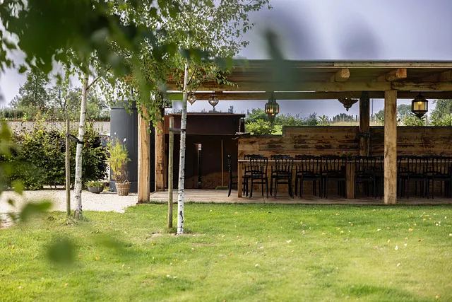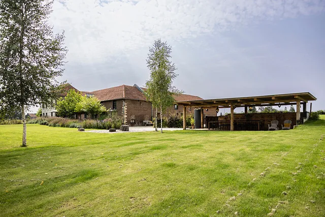 Nadat je binnen al het prachtigs hebt bewonderd, zal de buitenkant je wellicht nog meer verbazen! Het adembenemende uitzicht biedt een gevoel van rust, ruimte en vrijheid. Ontspan in de loungehoeken en laat het schitterende met 5 sterren bekroonde Heuvellandschap op je inwerken. Onder de pergola staat een royale eettafel, perfect voor gezamenlijke maaltijden met het hele gezelschap.