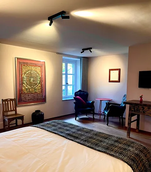De acht slaapkamers zijn allen ingericht in een eclectische stijl waarbij antiek, kunst en hedendaags ontwerp smaakvol samenkomen.