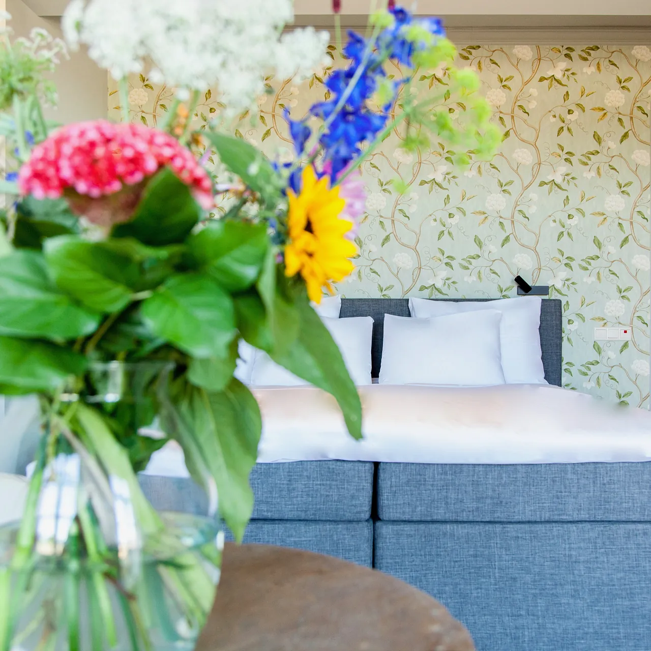 U kunt er slapen als een vorst in een kingsize boxspring bed van 180/ 200 x 210 cm.
