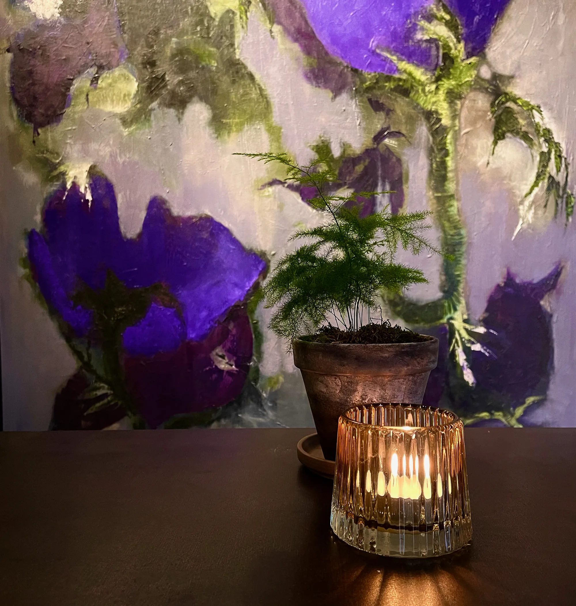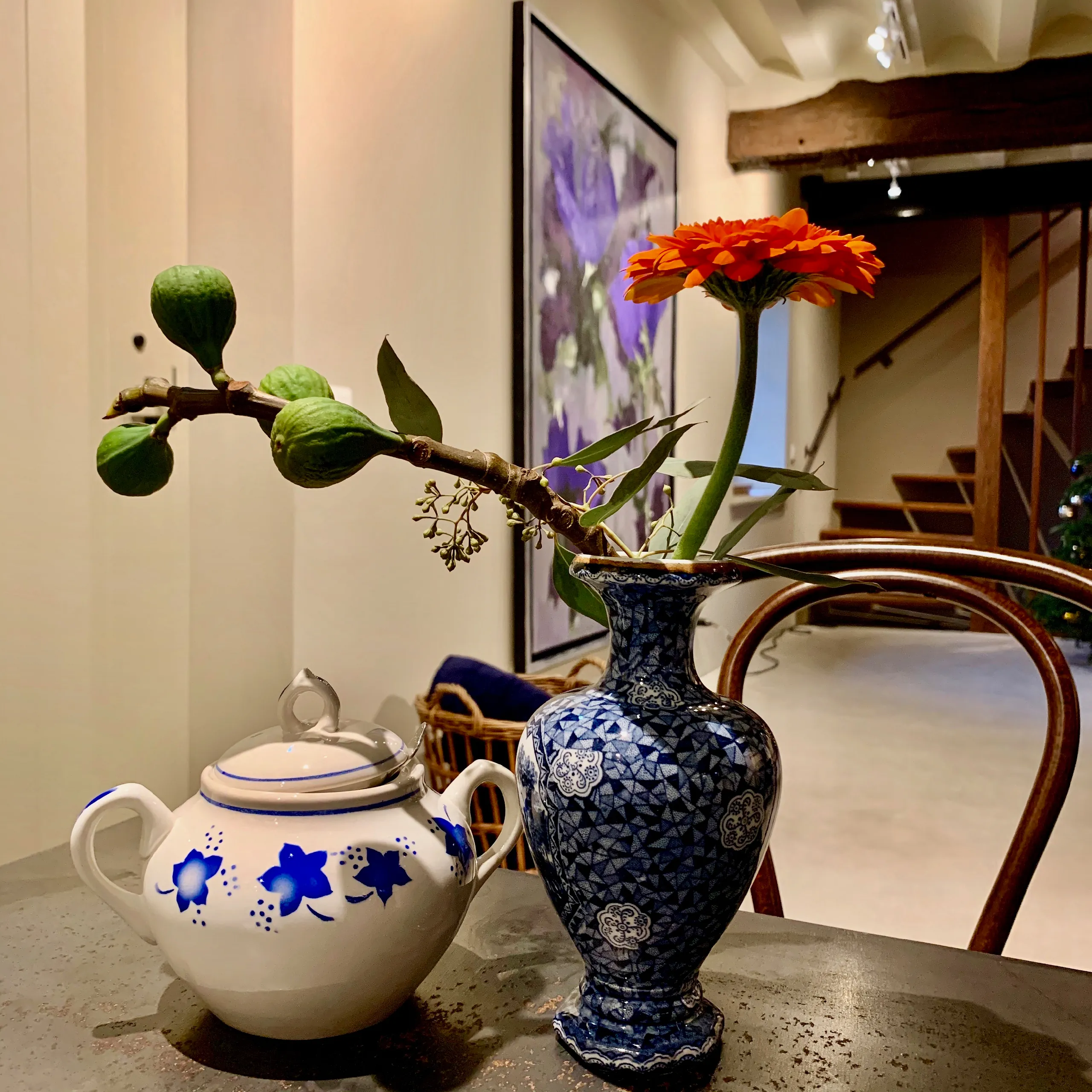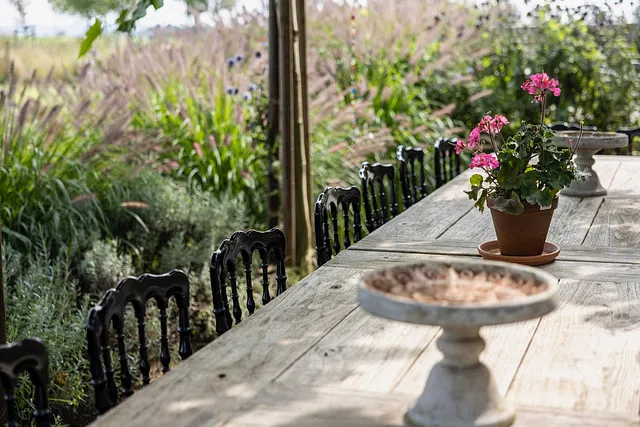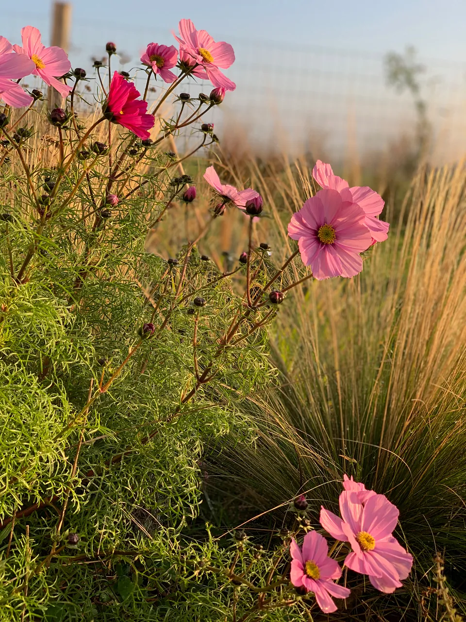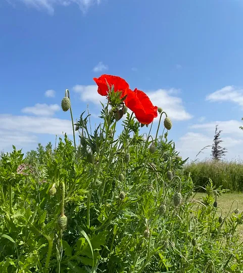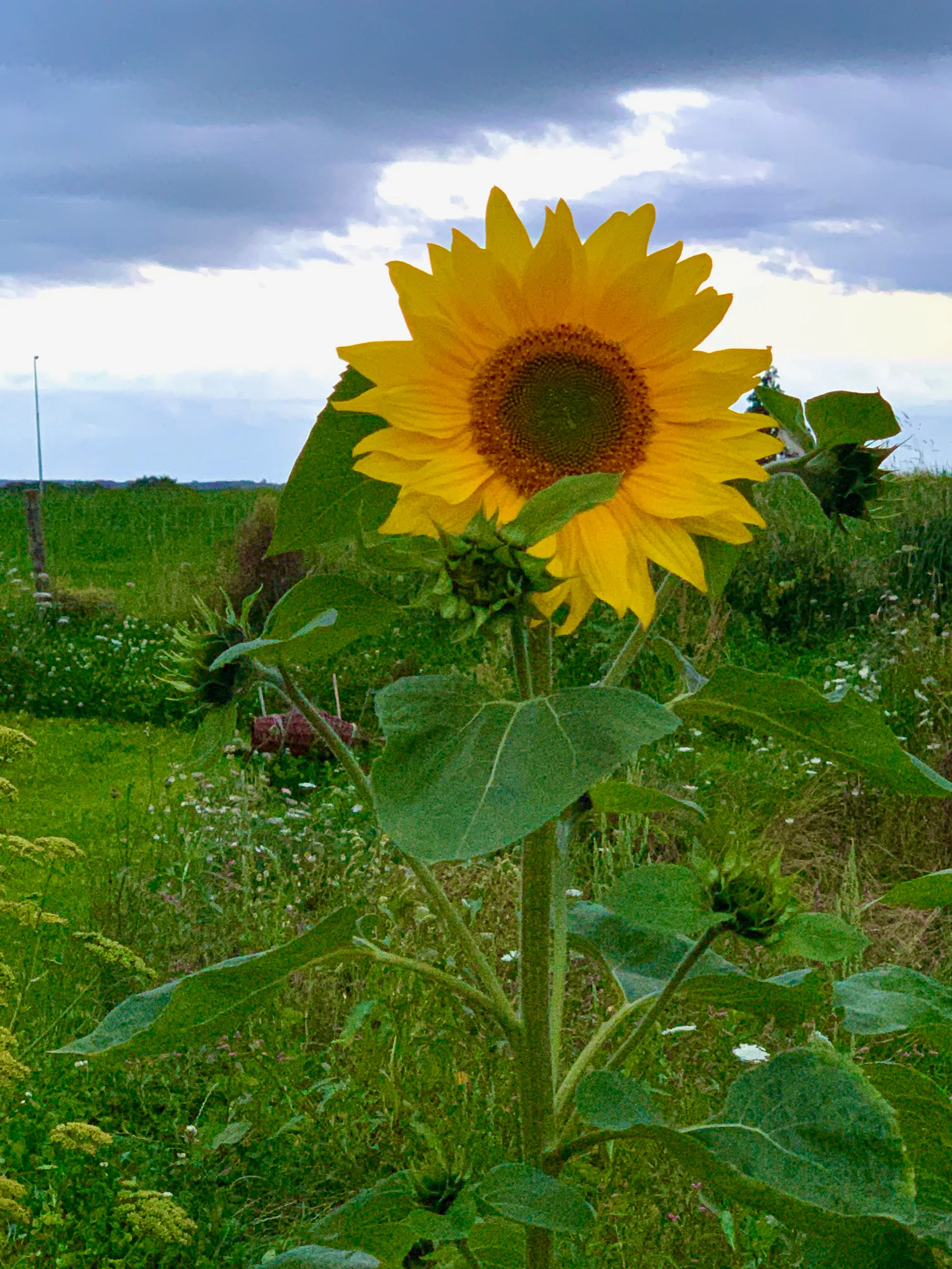 Bij ons geen kerosine stress maar vlinders die fladderen door de grote tuin en bijtjes die nectar zoeken in de borders vol bloemen.