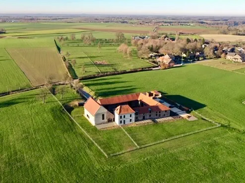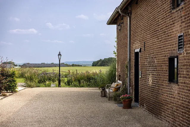 Bij aankomst over de oprijlaan zie je de statige Hoeve al recht voor je. Links af, op het eigen terrein is een ruime parkeerplaats met twee oplaadpalen voor elektrische auto’s. U vindt daar ook de ingang van het vakantiehuis. Bij binnenkomst zie je in één oogopslag de garderobe en de grote horecakeuken. Via de ontbijtkeuken komt u in de gezellige lounge .