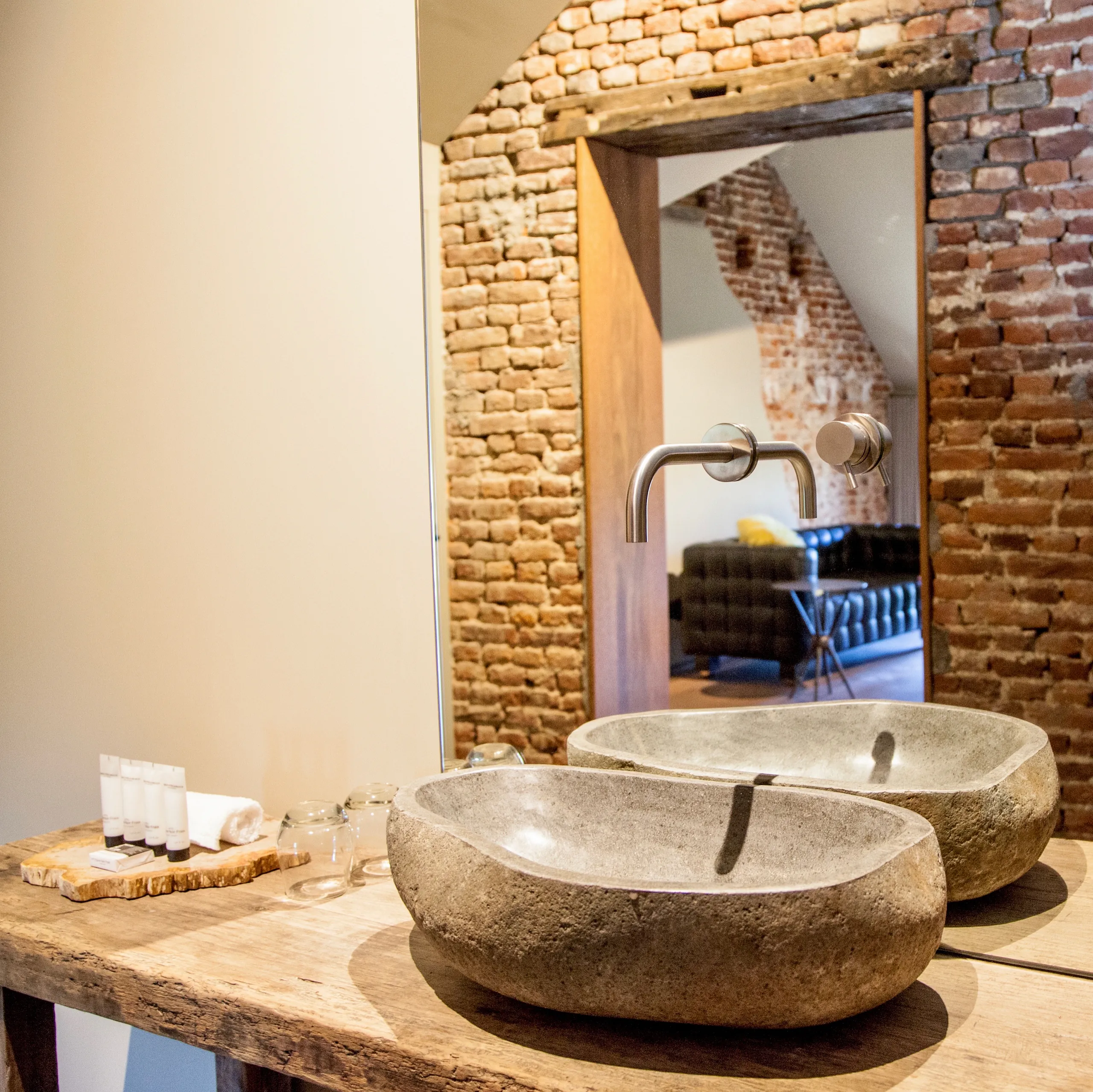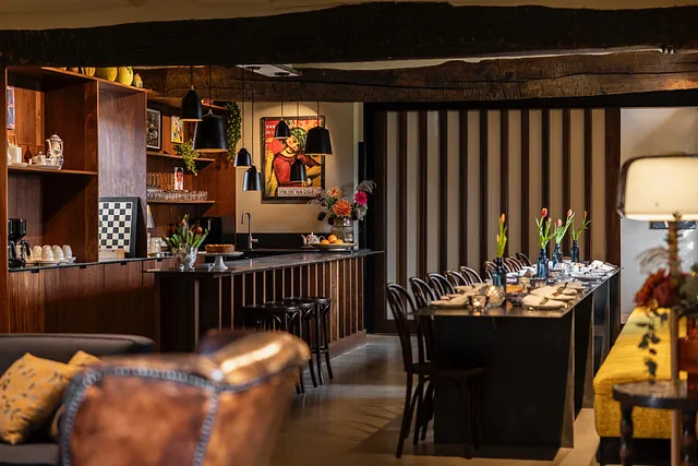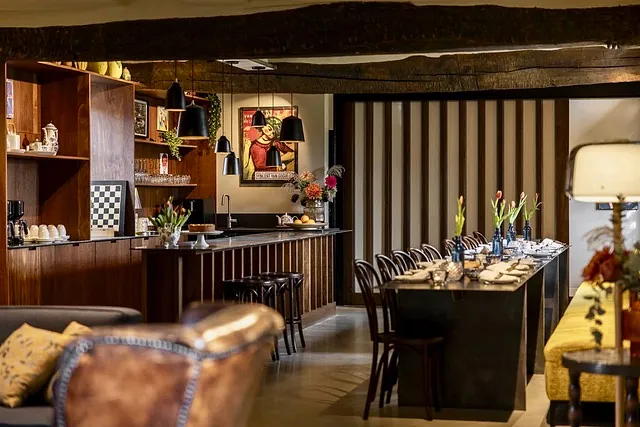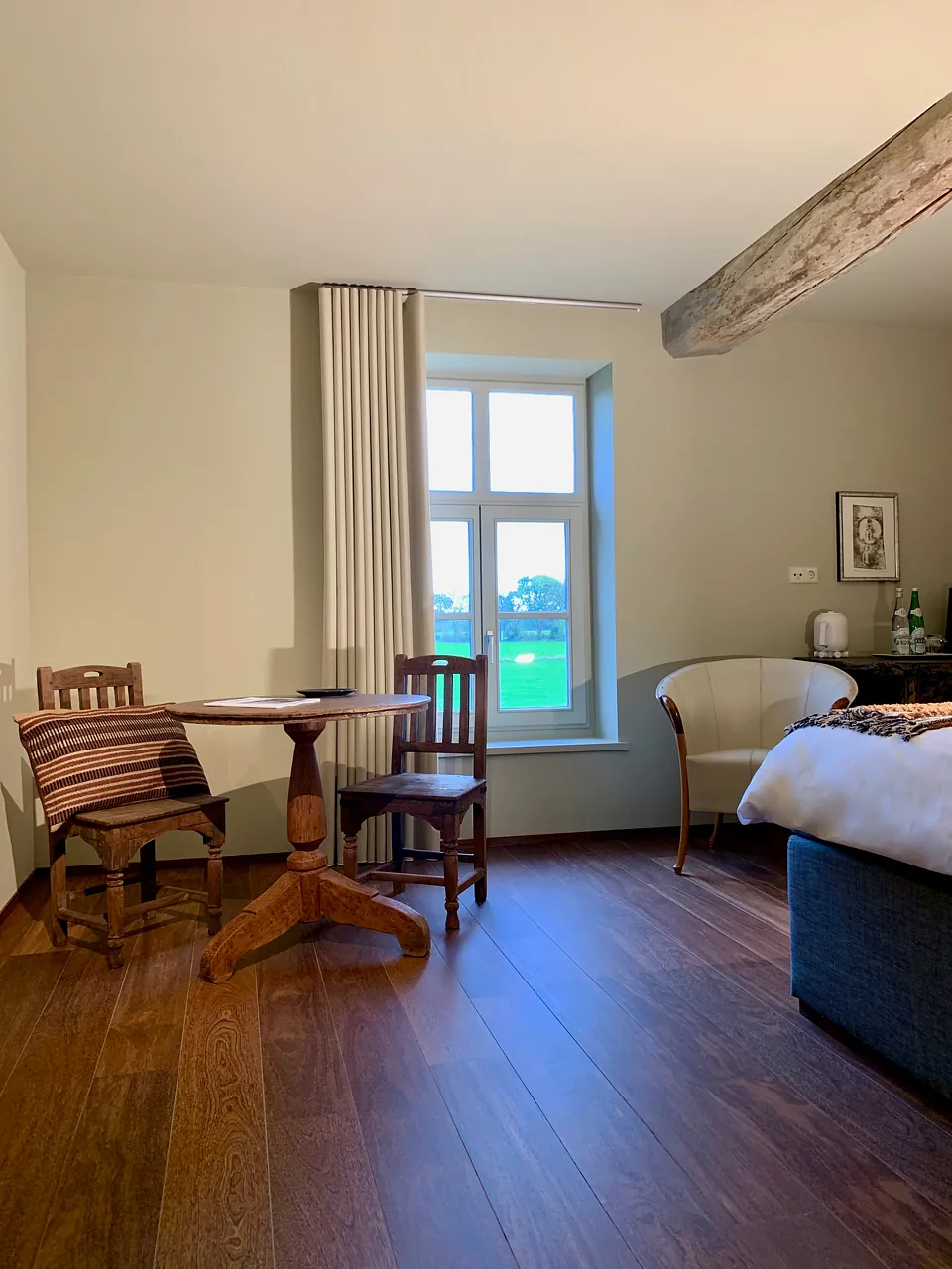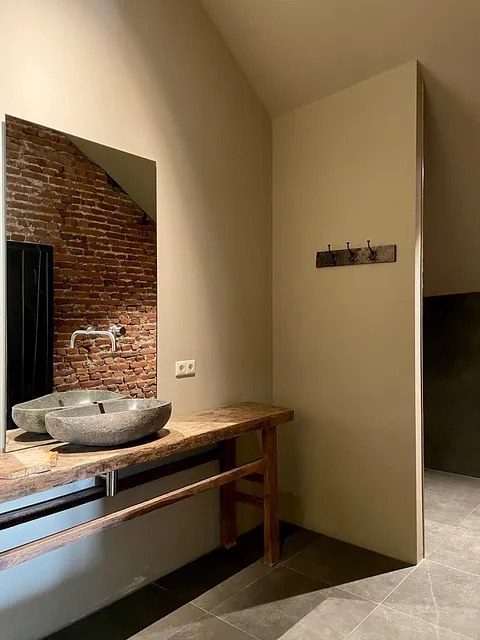 Het hart van de vakantiewoning is de gezellige lounge. Een prachtige open leefruimte doordrenkt van luxe, sfeer en karakter. De lange bank met stalen tafel nodigt uit om te genieten van een Bourgondisch diner of te ontspannen met een goed glas lokale wijn. Er is zelfs een eigen bar met koffiehoek! De eyecatcher van de leefruimte is de eeuwenoude mergelmuur in de zithoek, waar oud en nieuw perfect samenkomen.