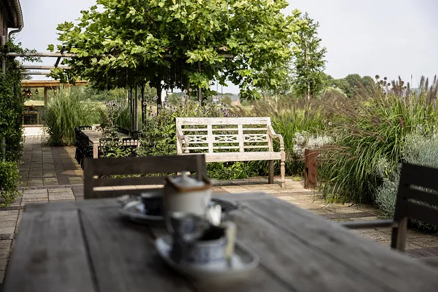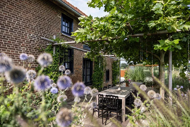 In de zeer royale tuin is een prachte “buitenkamer” gerealiseerd, een overdekt en beschut terras waar u ook bij slecht weer met uw gezelschap kunt dineren of loungen. Deze betoverende plekken zijn het hele jaar door genietbaar; van fabuleuze zonsopgangen, zwoele zomerse avonden, de kleurenpracht van de herfst en een betoverend winters landschap. Naast de buitenkamer staat de “Ofyr” houtgestookte barbecue met grill en plancha; een ware must voor de echte BBQ-liefhebber. Bij de boeking moet vooraf gemeld worden of U van de BBQ-gebruik wenst te maken.